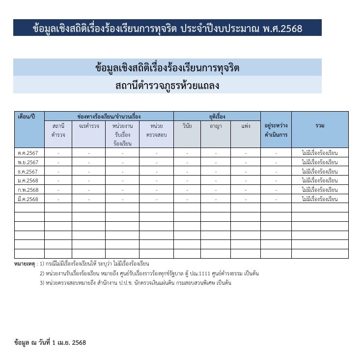 O17 ช่องทางการแจ้งเรื่องร้องเรียนการทุจริตและข้อมูลเชิงสถิติเรื่องร้องเรียนการทุจริต